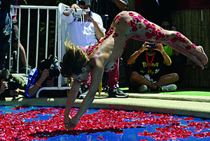 Luli homenajea a película en el tradicional piscinazo por su corona