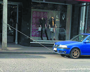 Amarrado a poste.