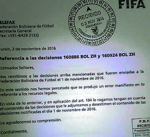 FIFA aseguró que la sanción a la selección de Bolivia se mantiene