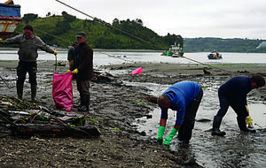 Mariscadores limpiaron su playa en Dalcahue