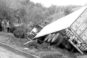 Chofer salva tras caer su camión a zanja en Ancud