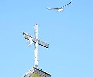 Bomberos de Ancud rescata a una gaviota desde la cruz de la catedral