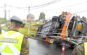 Volcamiento de bus inter regional en Chonchi deja a 35 pasajeros lesionados
