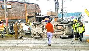 Auto volcó al impactar con camión de gas licuado