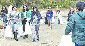 Alumnos limpian playa de Duhatao en la previa al Día Mundial del Turismo