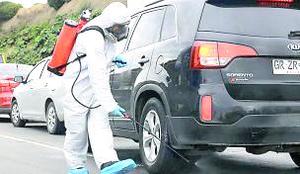 Funcionarios sanitizan vehículos en Chacao
