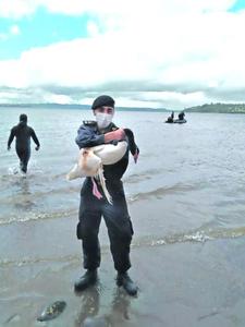 Rescatan a cisne de cuello negro herido en la costanera de Chonchi