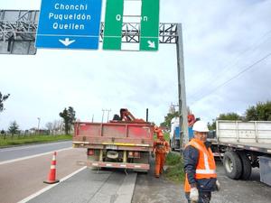 Retiran parte de letrero caminero por el riesgo de desprendimiento